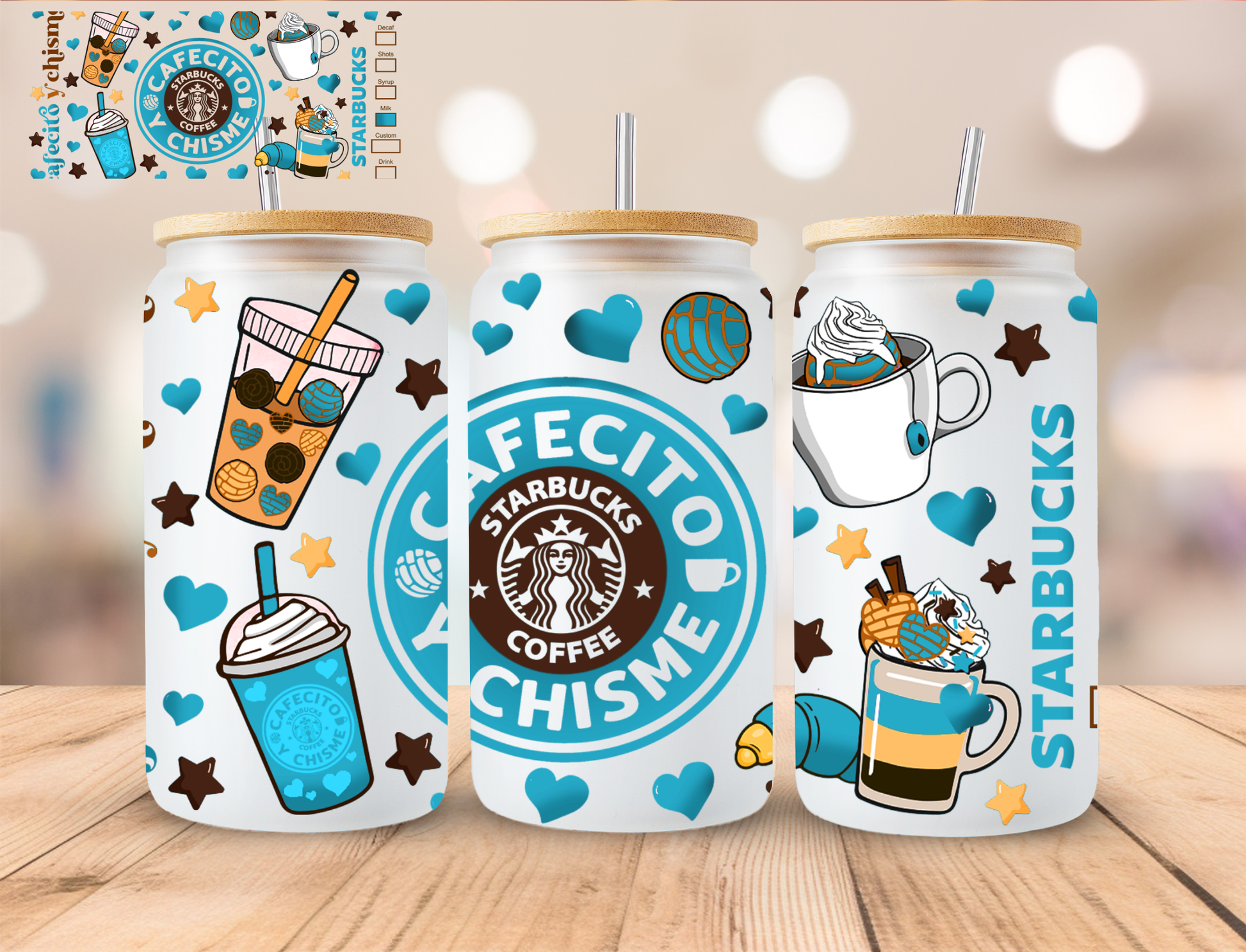 Blue Cafecito Y Chisme - 16 oz / 20 oz Libby UV DTF Wrap