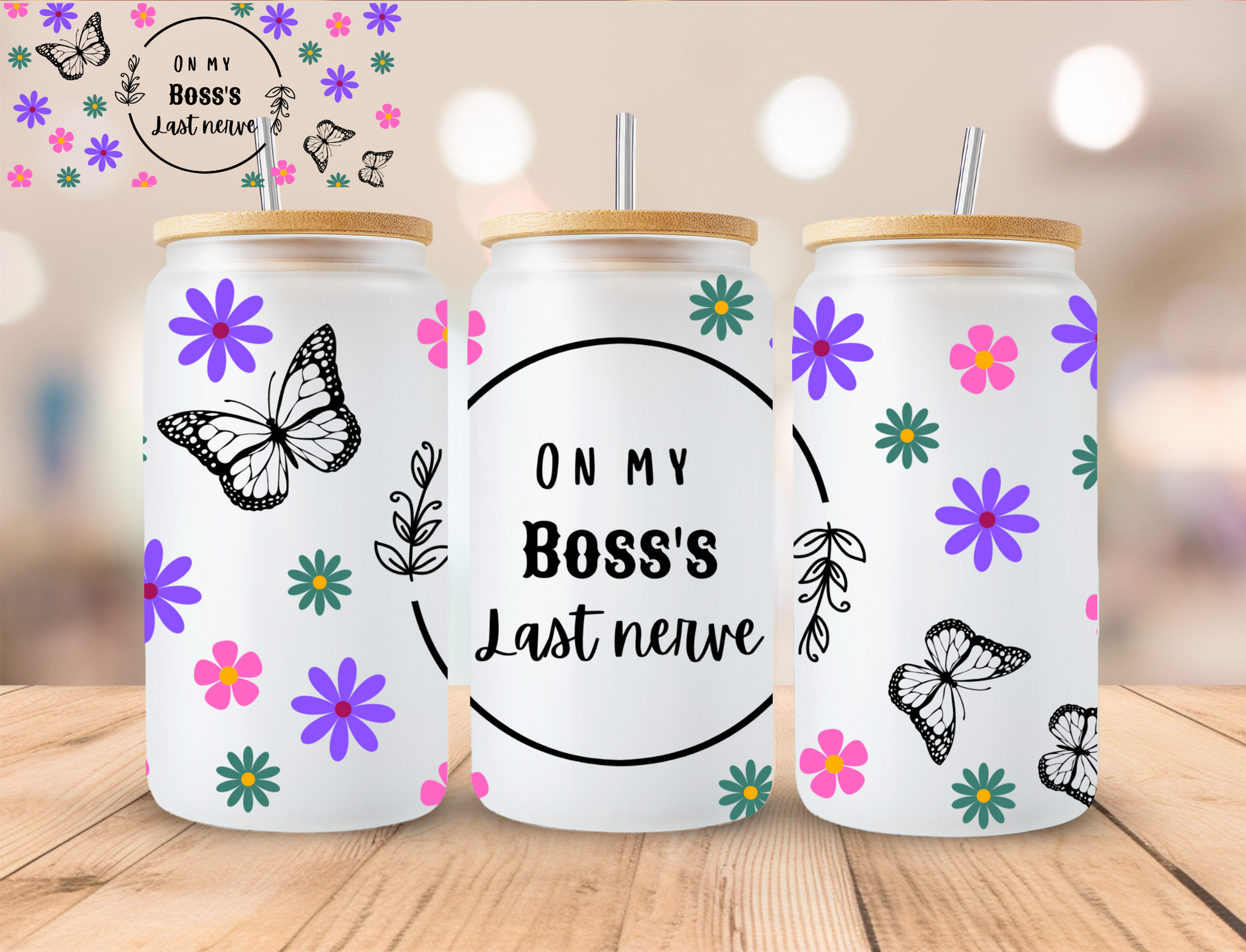 Floral On My Boss's Last Nerve - 16 oz / 20 oz Libby UV DTF Wrap