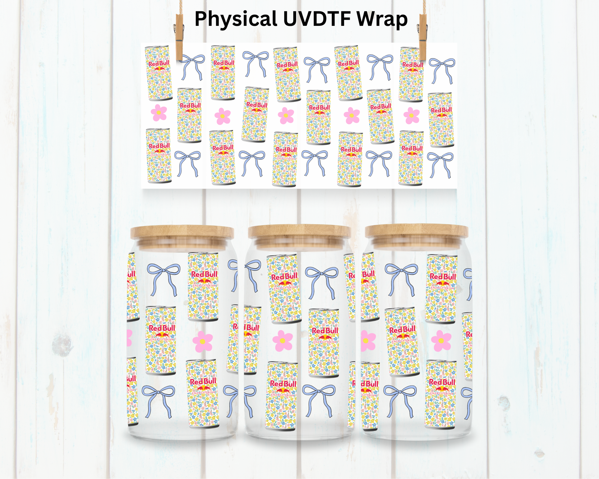 Floral Coquette R Bull Canned Soda - 16 oz / 20 oz Libby UV DTF