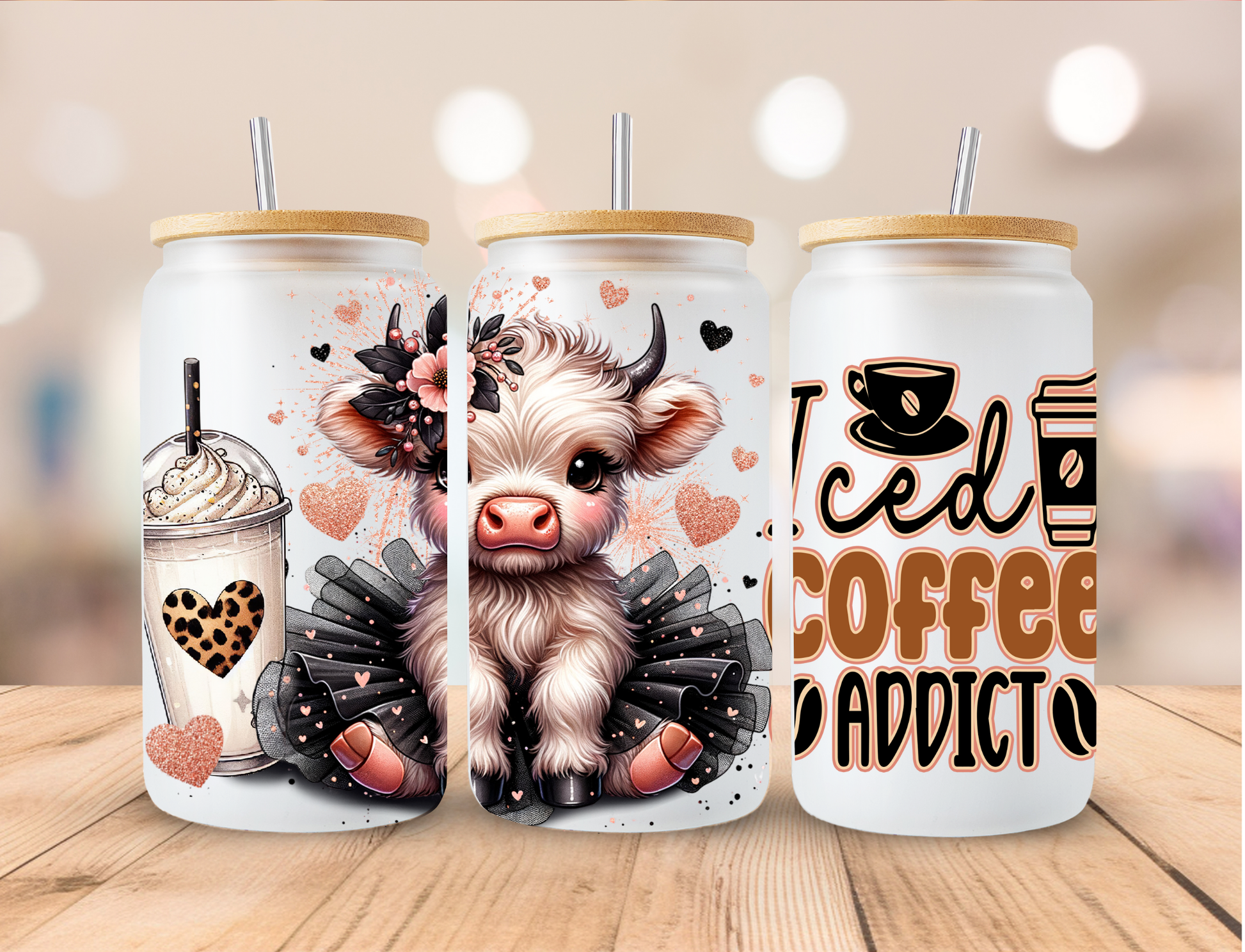 Highland Iced Coffee Cow - 16 oz / 20 oz Libby UV DTF Wrap