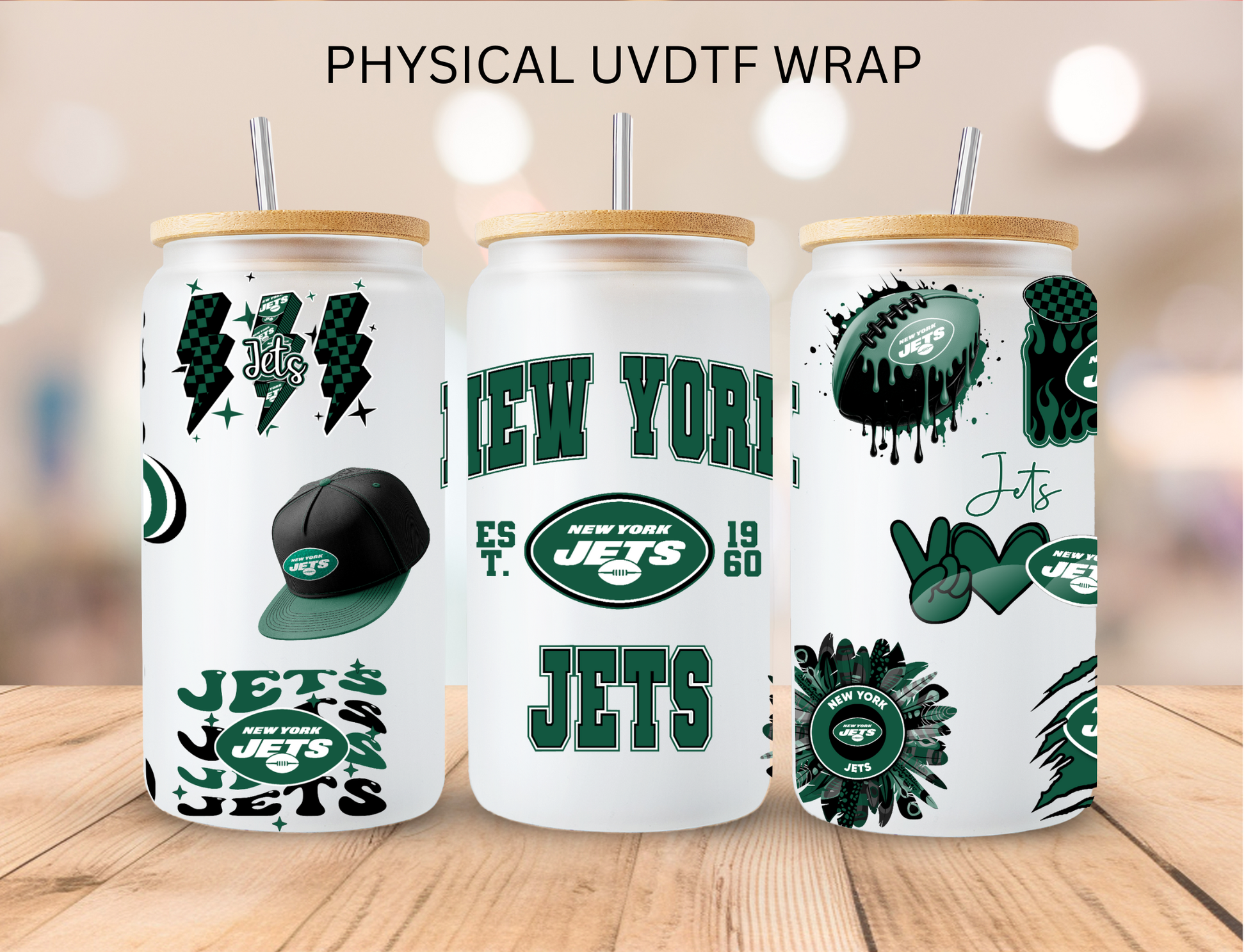 Jets NFL Team - 16 oz / 20 oz Libby UV DTF Wrap