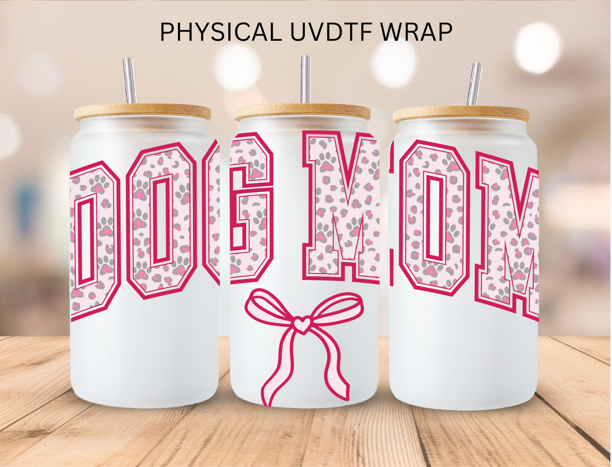 Floral Dog Mom N Bow - 16 oz / 20 oz Libby UV DTF Wrap