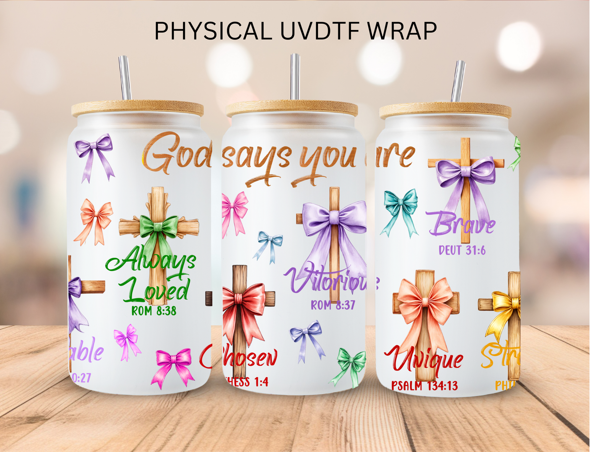 God Says You Are Coquette Bows - 16 oz / 20 oz Libby UV DTF