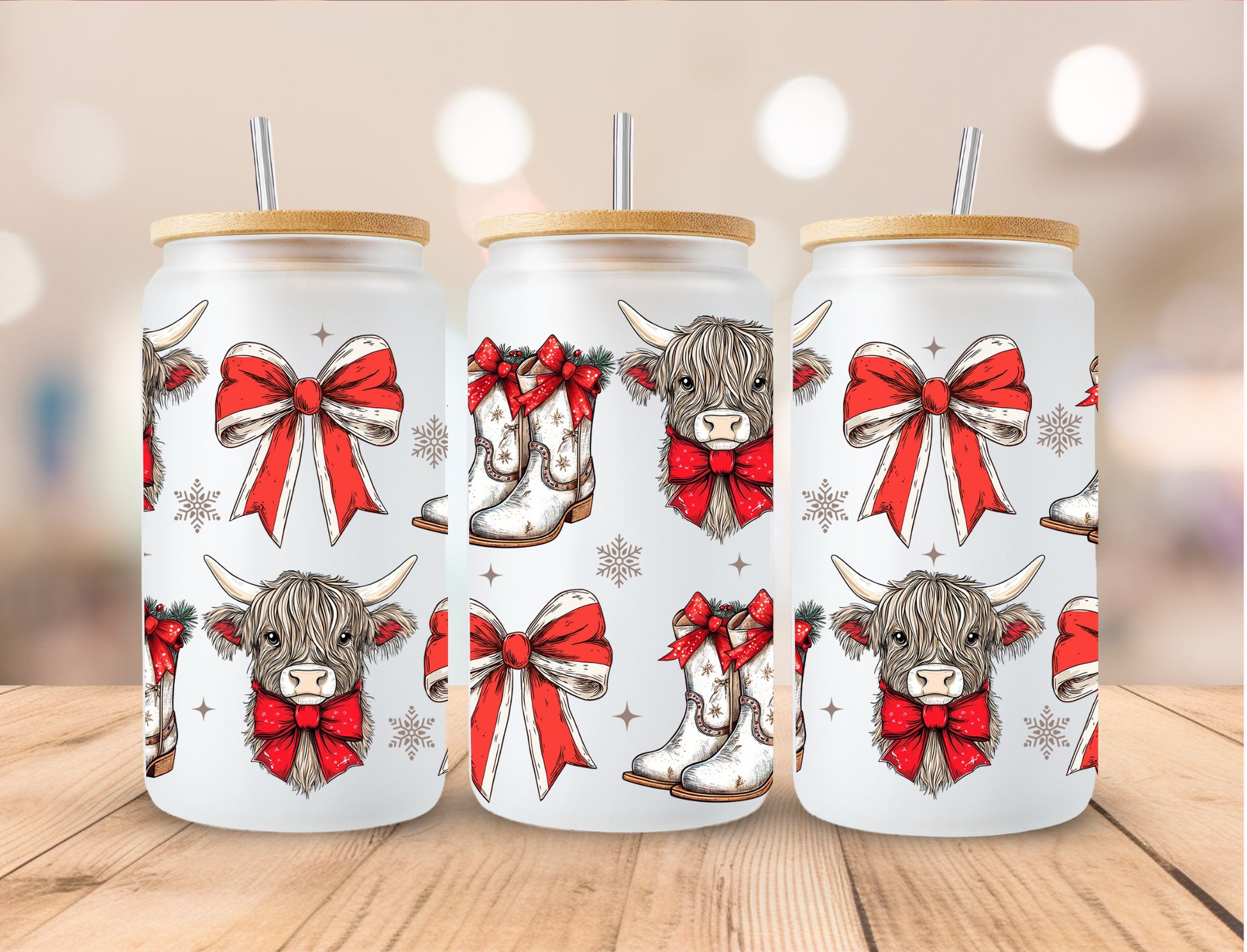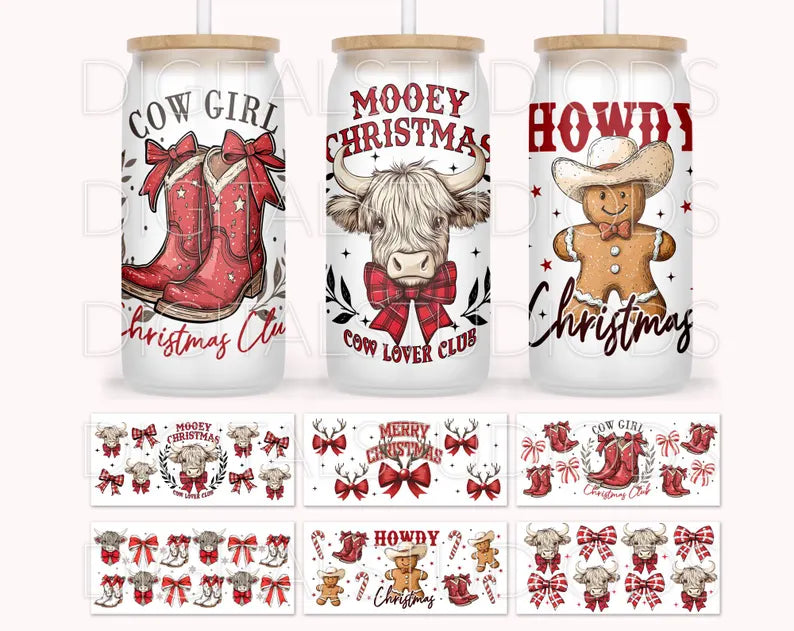 Western Red Christmas Collection - 16 oz / 20 oz Libby UV DTF Wrap