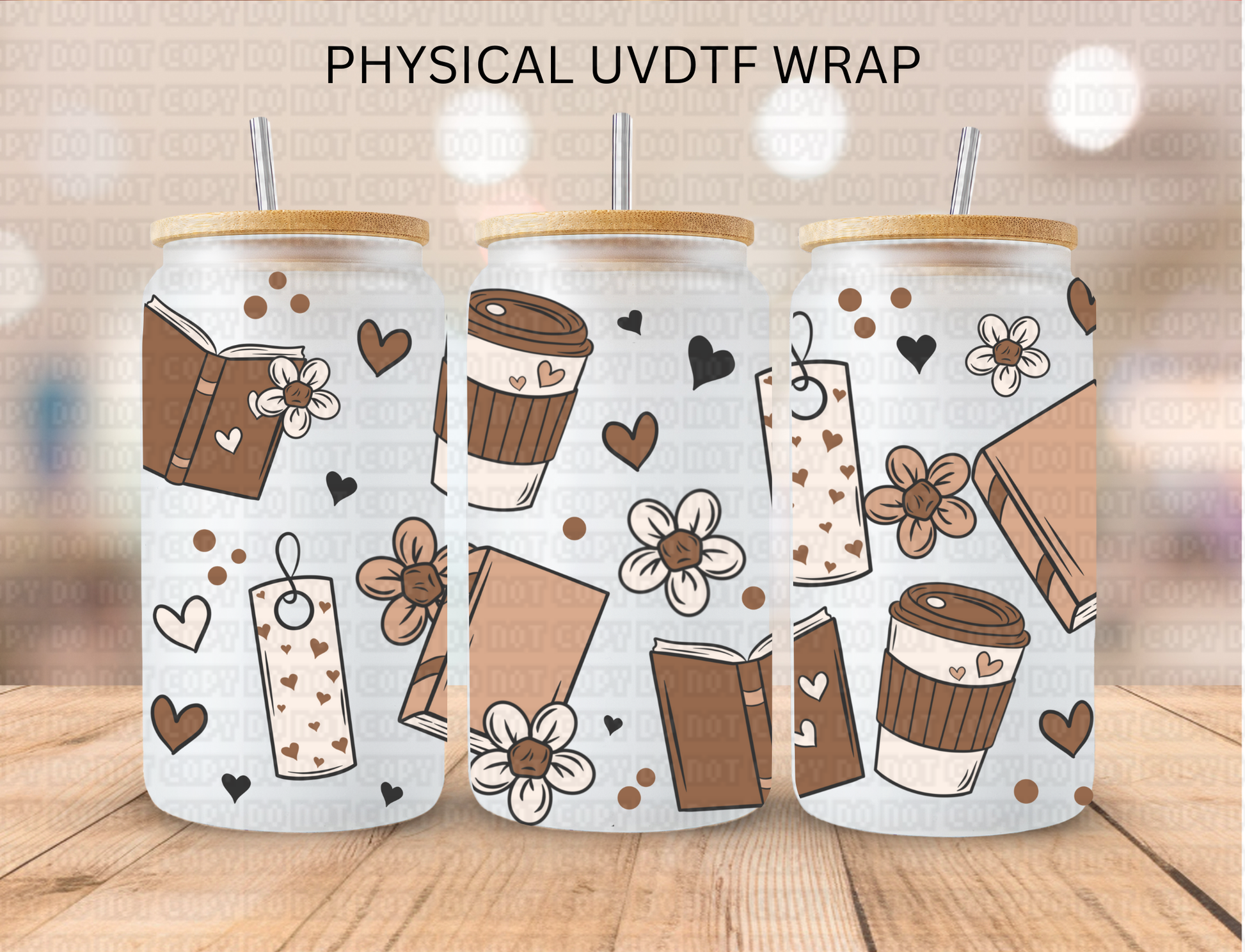 School Neutral Books And Coffee - 16 oz / 20 oz Libby UV DTF