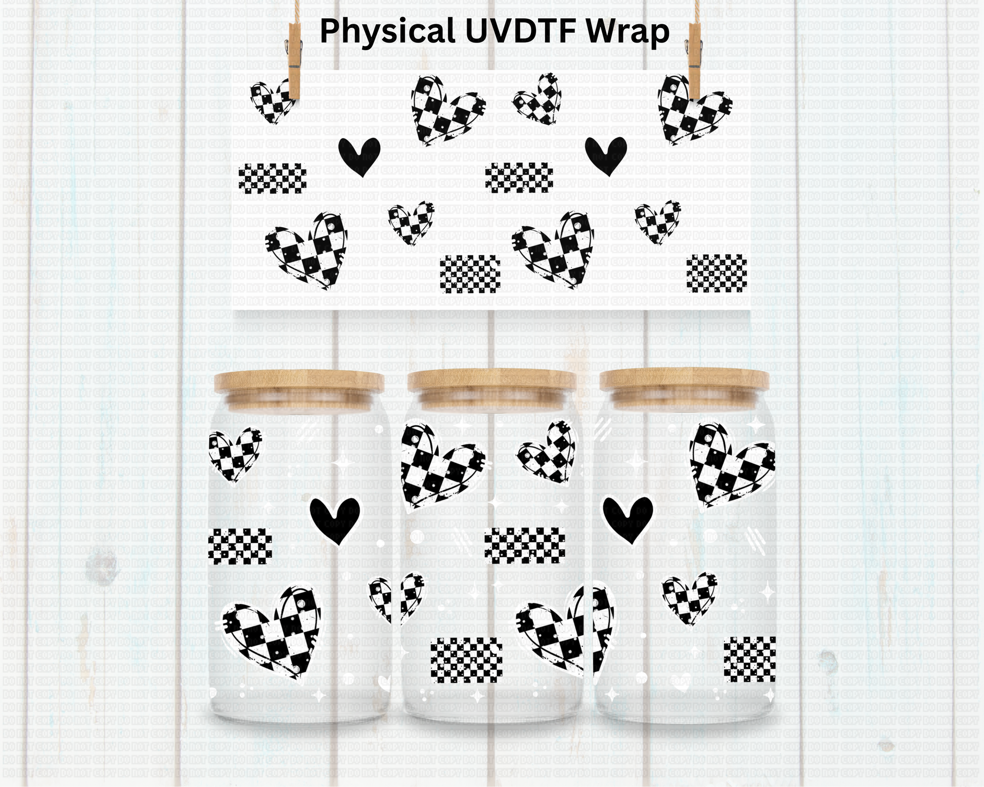 Checkered Black N White Hearts - 16 oz / 20 oz Libby UV DTF