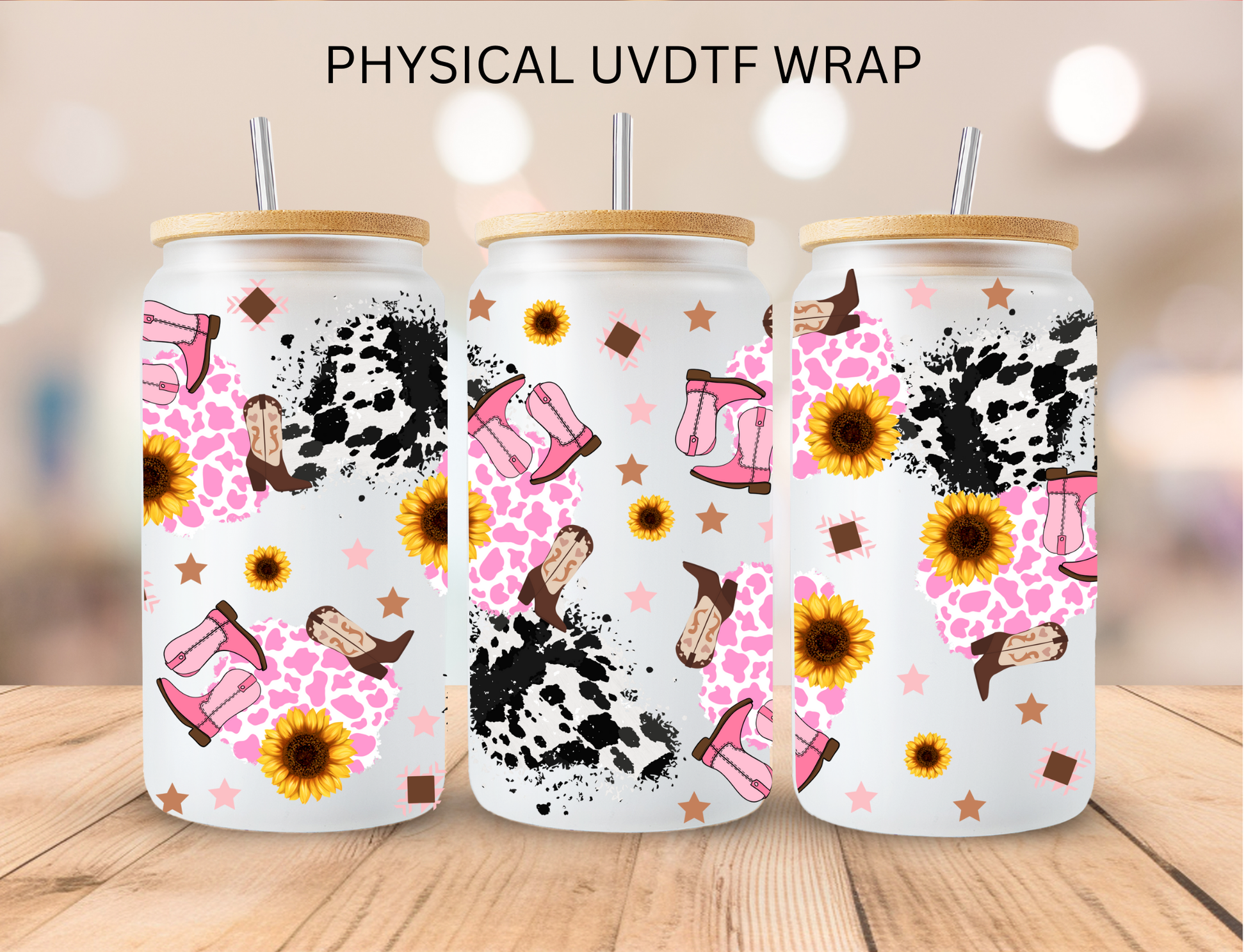 Cow Print Cowgirl Boots - 16 oz / 20 oz Libby UV DTF