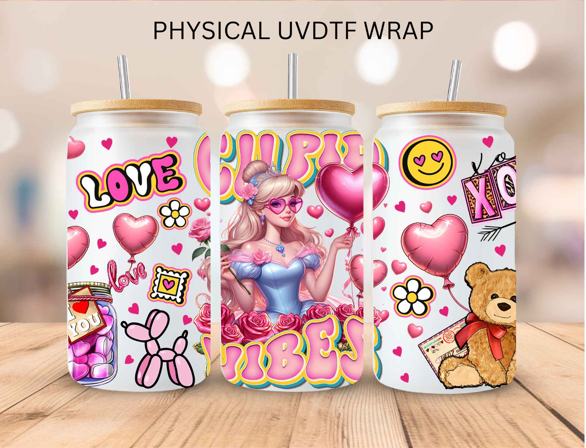 Valentines Cupid Vibes Glass Slipper Princess - 16 oz / 20 oz Libby UV DTF