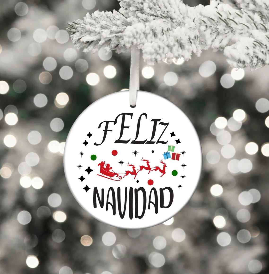 Feliz Navidad / White Acrylic Ornament UV DTF Decal